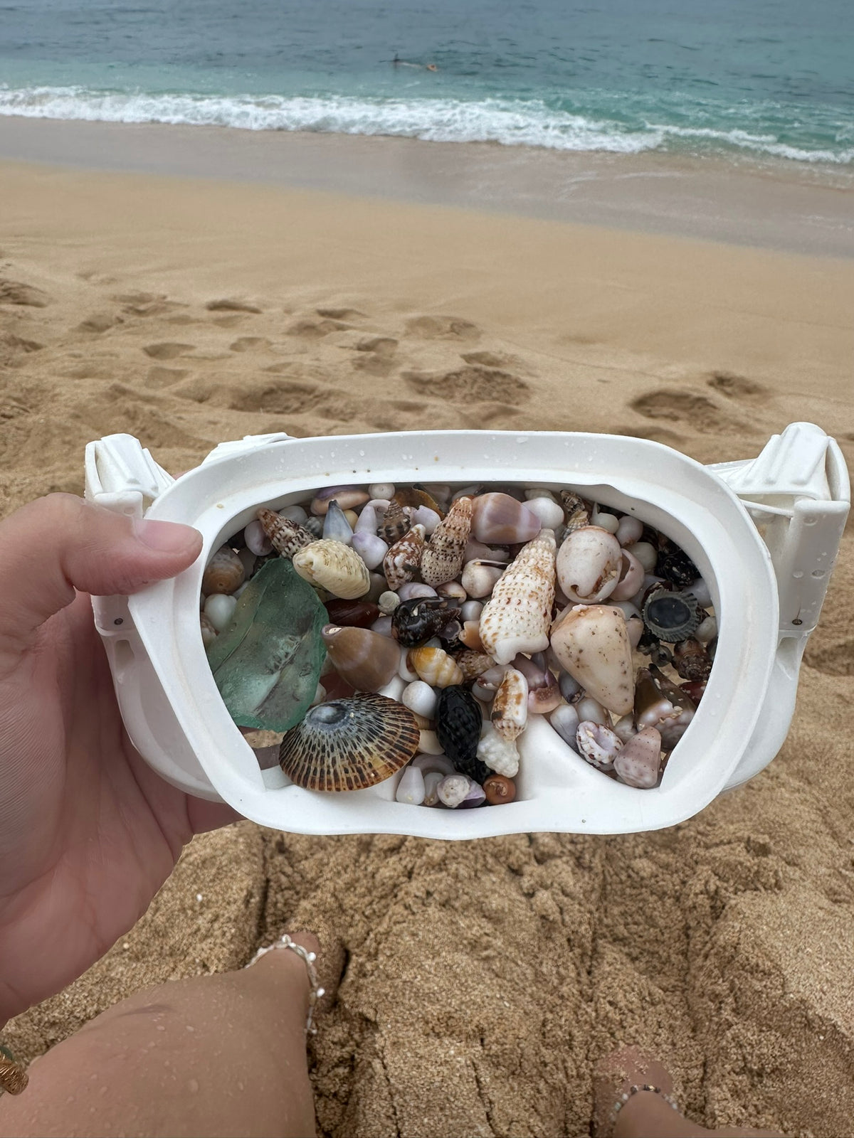 Each piece begins its journey in the pristine waters of Hawaii, where we personally source every shell and ocean material through freediving and handpicking.